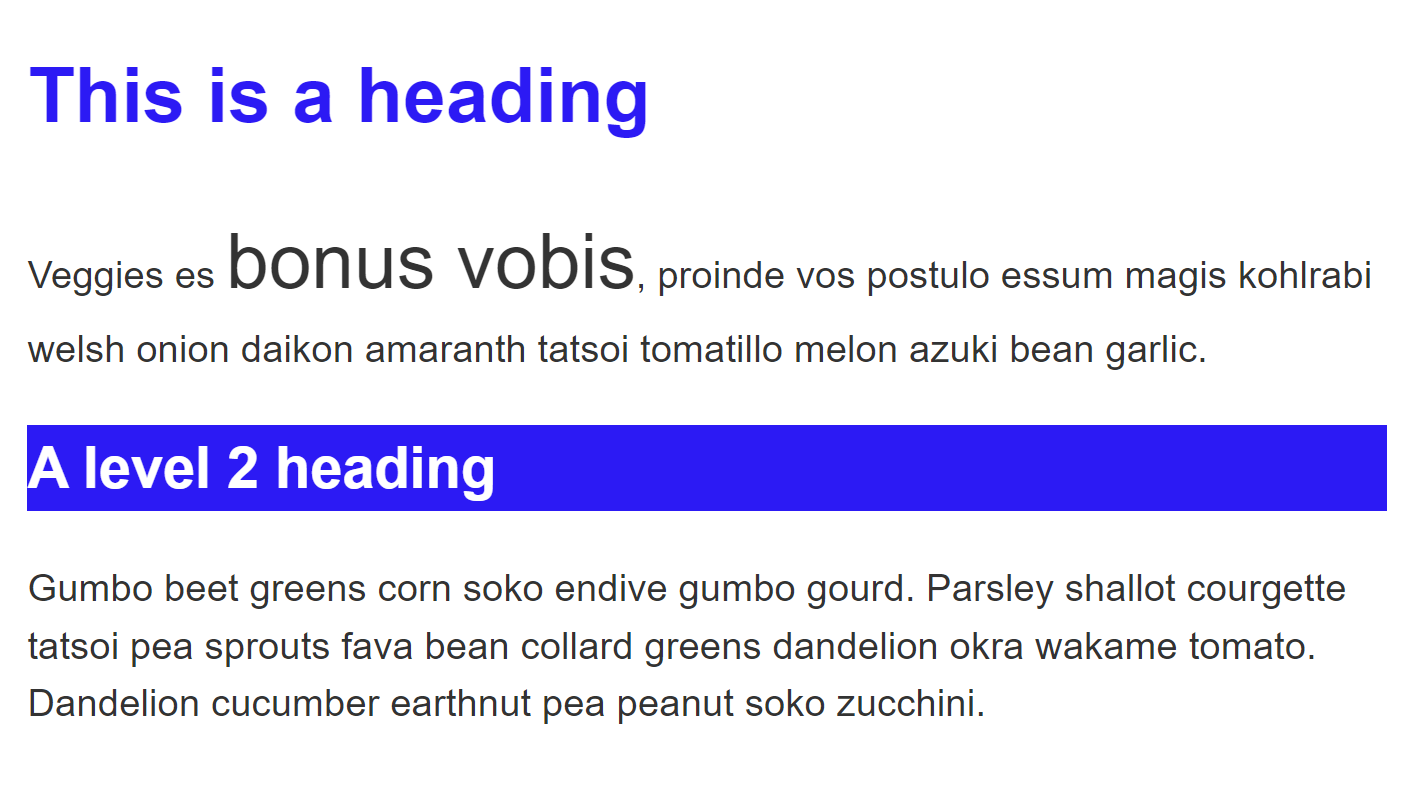 <h2>A level 2 heading</h2>