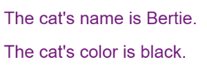 para2.textContent = `The cat's color is ${ cat.color }.`;