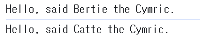In this task, we want you to return to the cat object literal from Task 1. We want you to rewrite the greeting() method so that it logs "Hello, said Bertie the Cymric." to the browser's console, but in a way that will work across any cat object of the same structure, regardless of its name or breed.